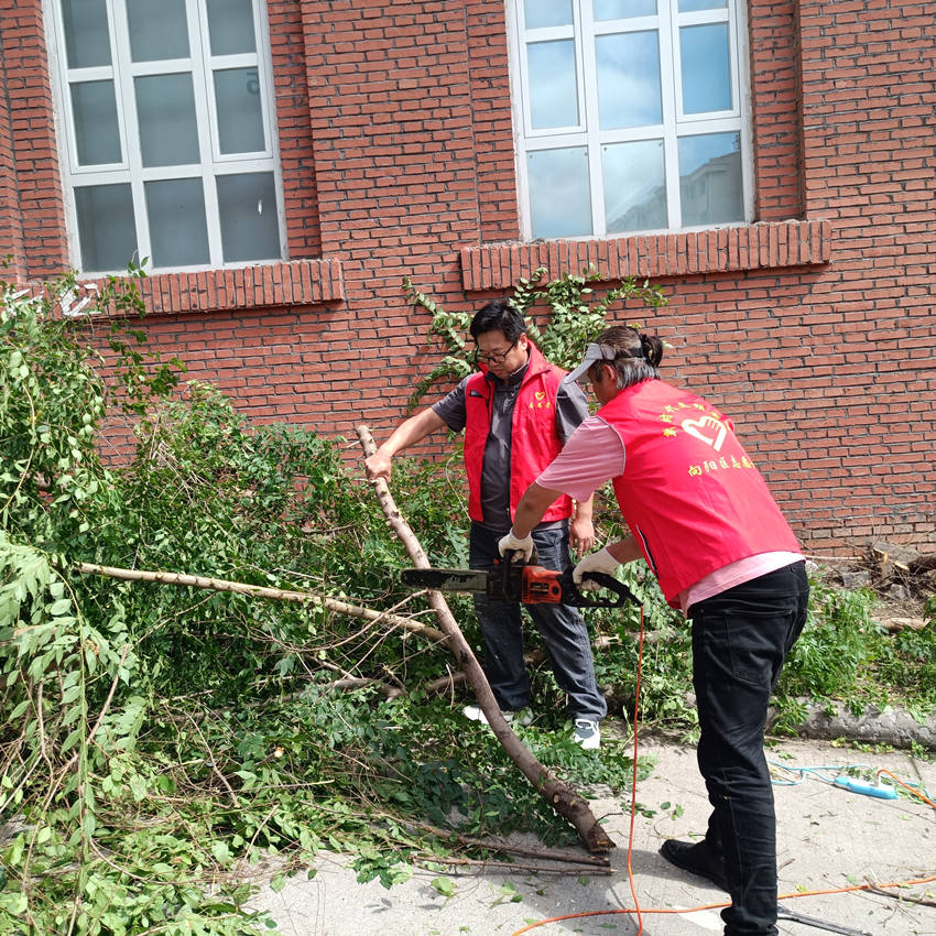 活动当天,博物馆工作人员及党员志愿者共同组建志愿者服务队,身着志愿服装,携带电锯、除草机等工具准时集结。行动中,志愿者们分工协作,对馆区周边的榆树进行精准伐除,并清理断枝残叶,确保消防通道畅通无阻。尽管天气炎热,志愿者们却始终保持高昂的热情,大家纷纷表示,参与此次志愿行动既是对党员“为人民服务”宗旨的践行,也是对家乡文化历史保护的责任担当。